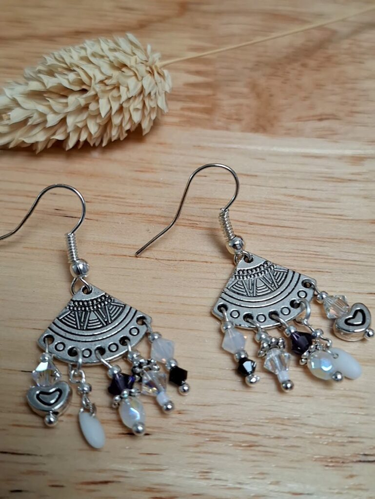 - des perles délicates : cristal de Swarovski (toupies), verre de Bohème ou matières originales,