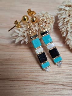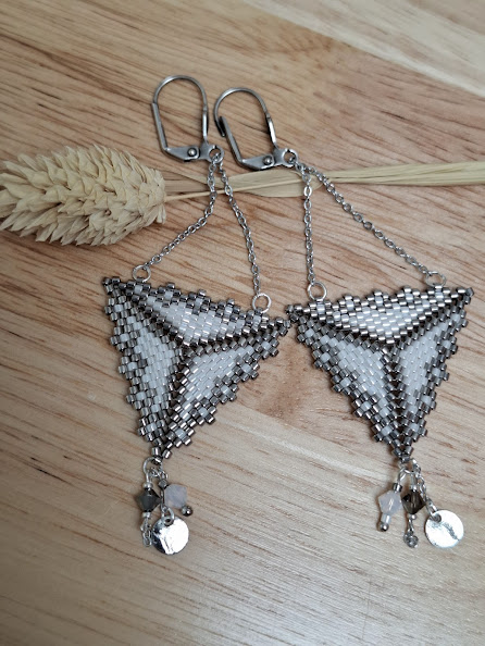 - des perles Miyuki Tila (largeur 5 mm, longueurs 5 / 2,5 / 1 mm), apportant structure et graphisme,