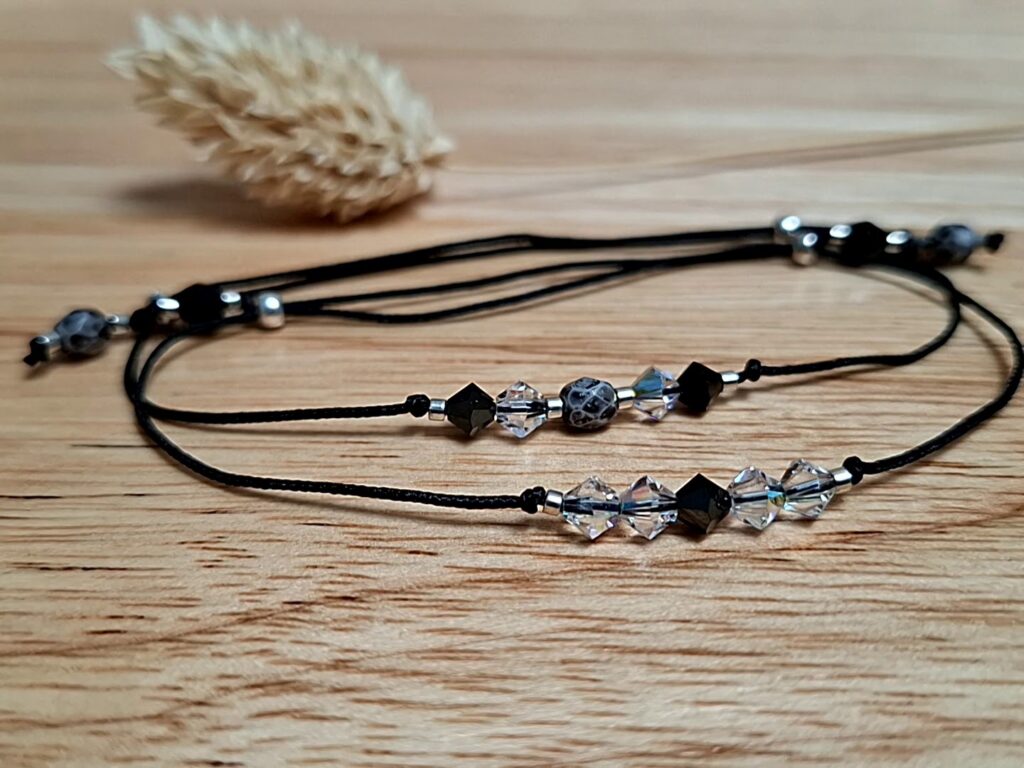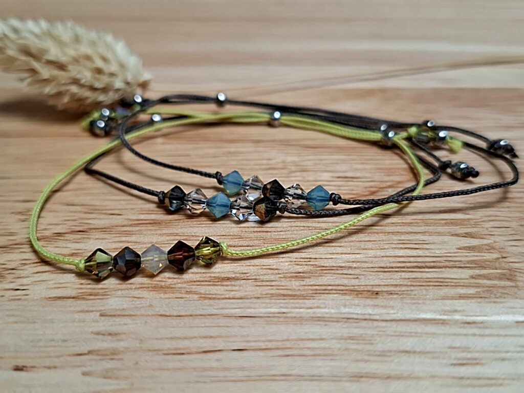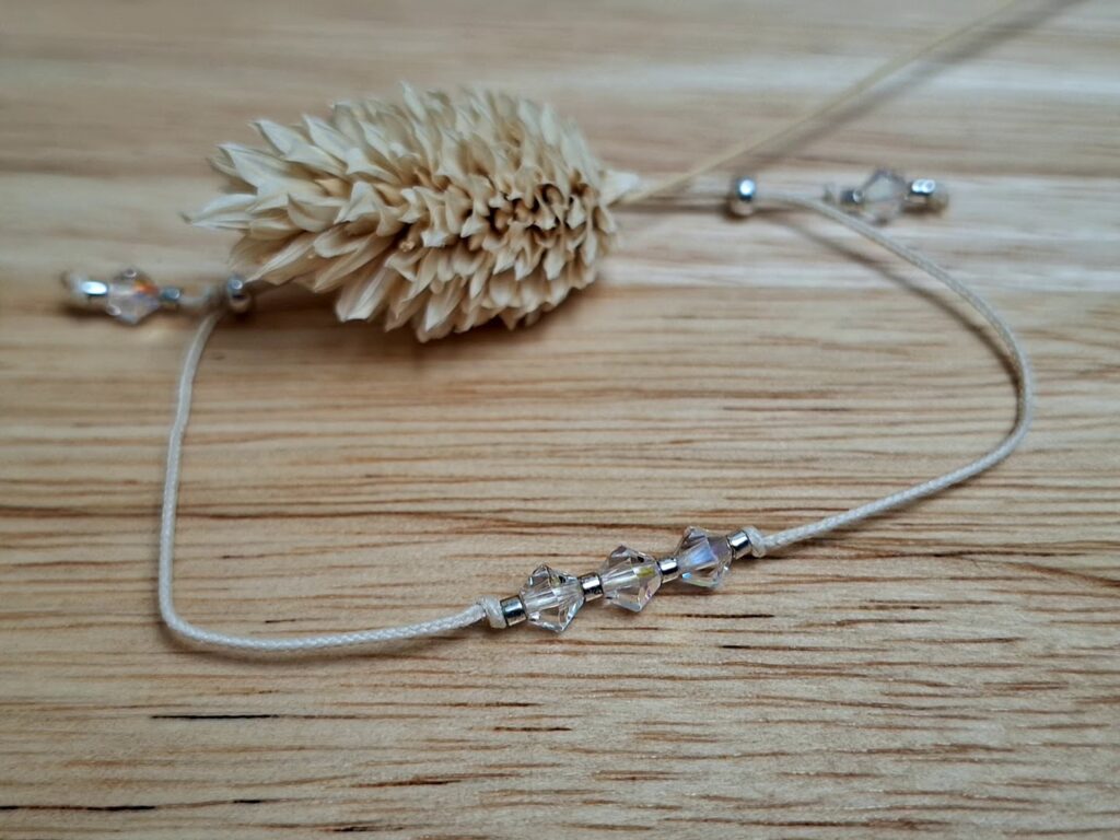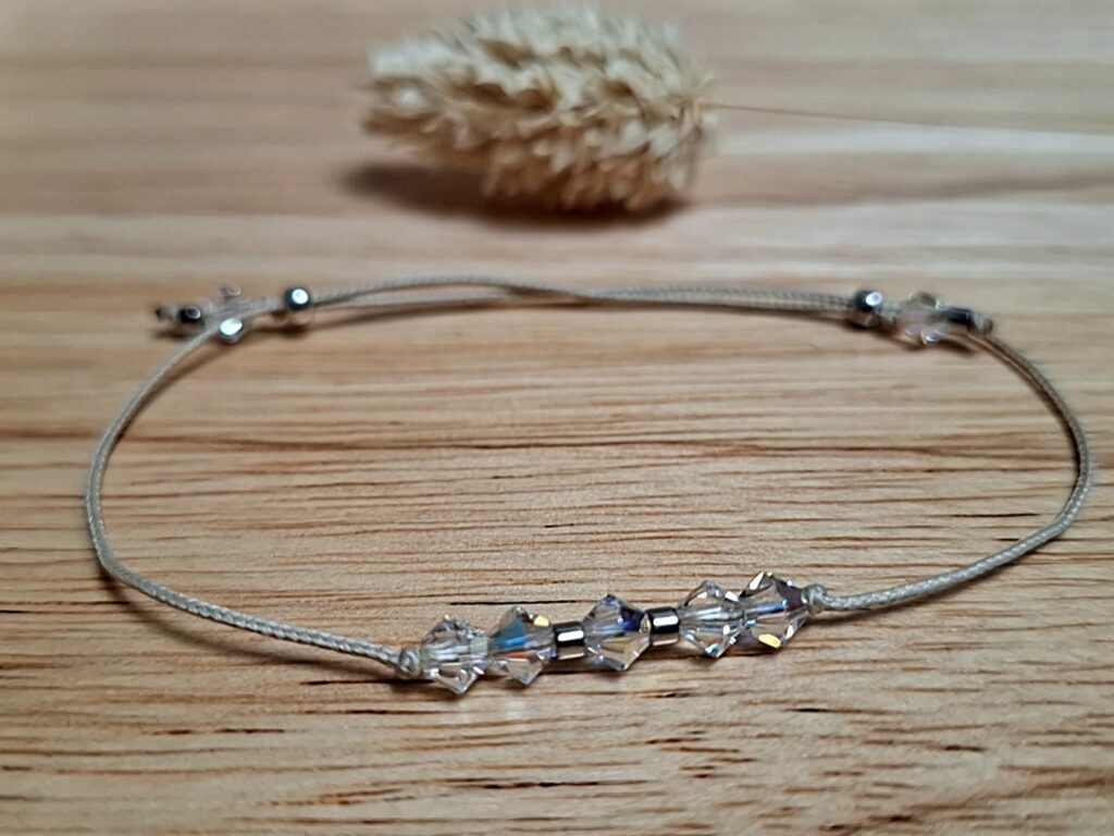 Des bracelets fins et intemporels CLASSIQUE ECLAT réalisés sur fil cordons et ornés de Toupies Cristal de Swarovski 6-8mm.