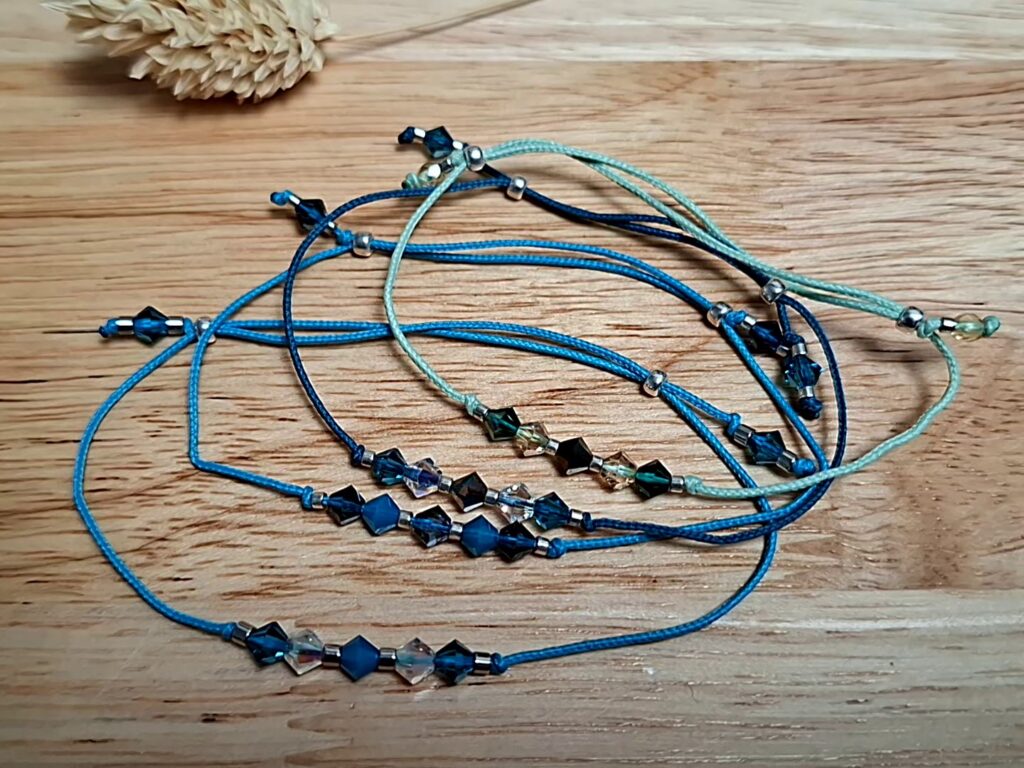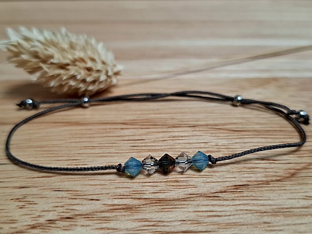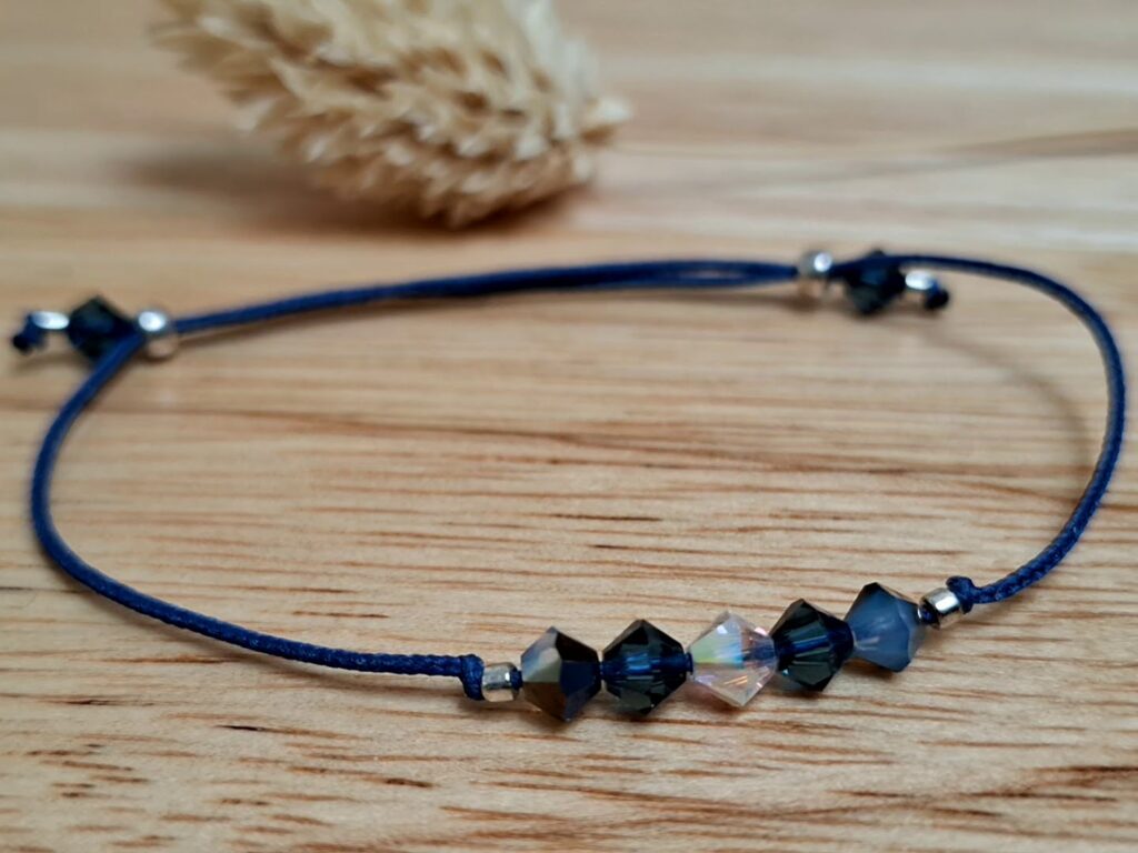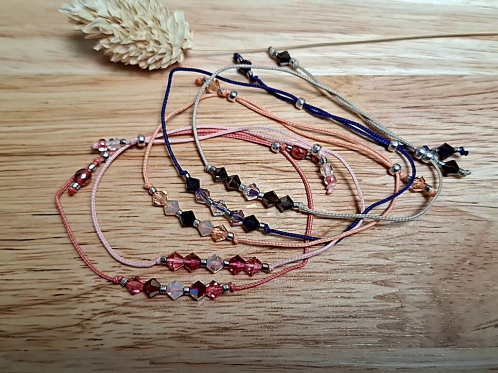 Des bracelets fins et intemporels CLASSIQUE ECLAT réalisés sur fil cordons et ornés de Toupies Cristal de Swarovski 6-8mm.
