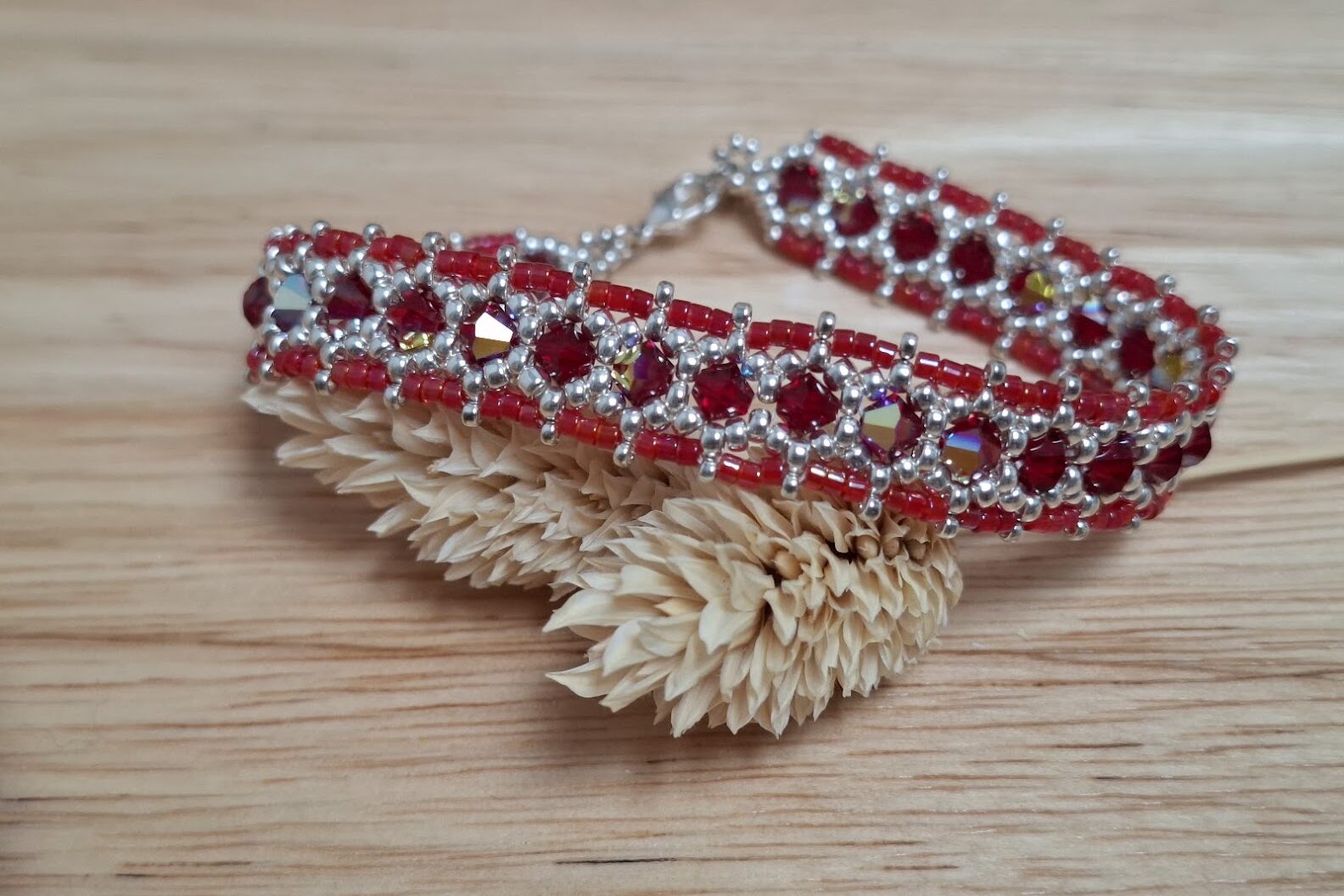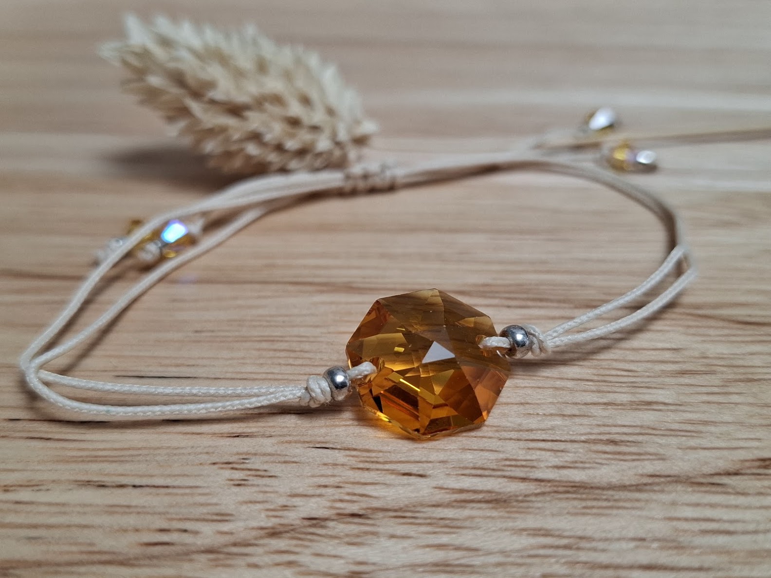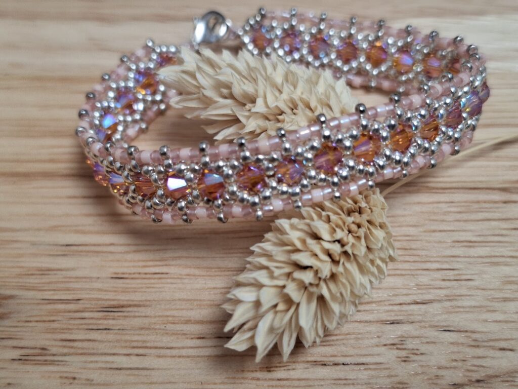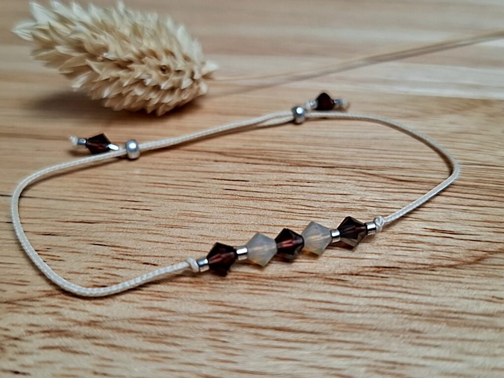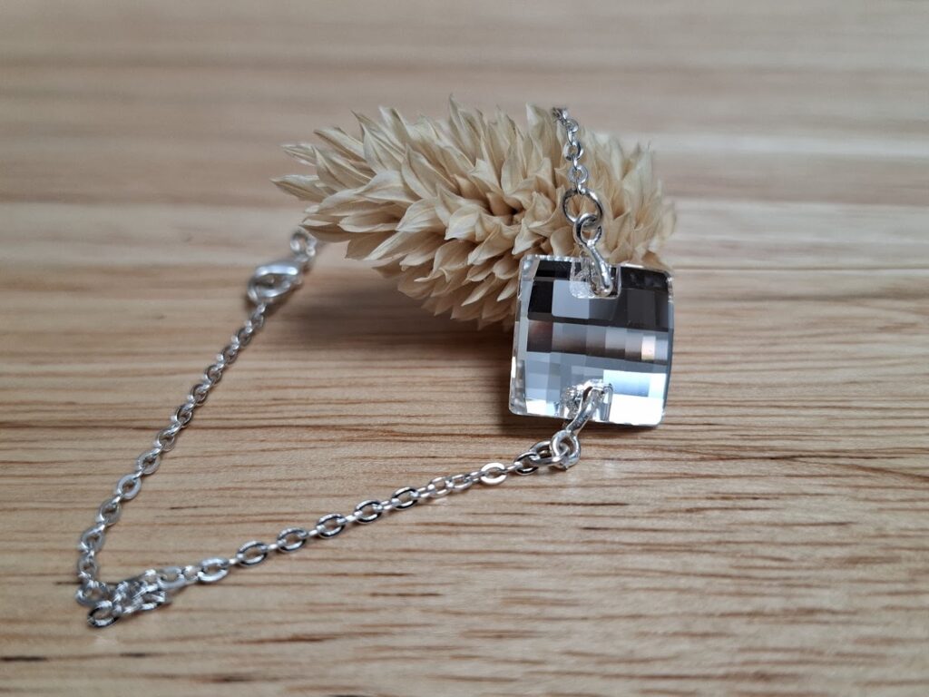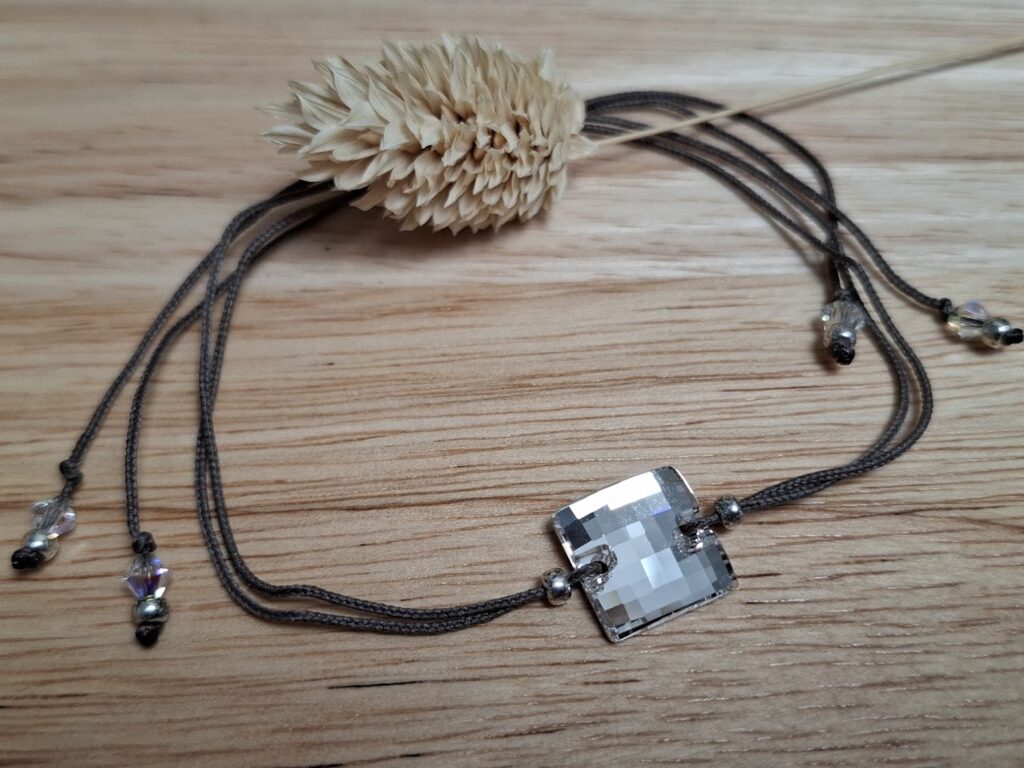 • des cristaux Swarovski sous de multiples formes : cabochons, toupies, perles rondes lisses ou facettées, cubes, hexagones, silhouettes plates ou coniques,