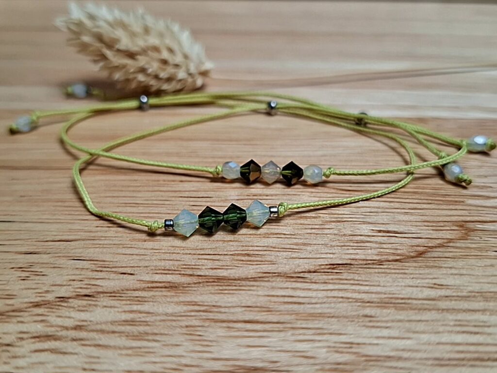Des bracelets fins et délicats CLASSIQUE ESSENTIA aux Toupies cristal de Swarovski petits formats (4mm) incarnant la subtilité et du fait de leur éclat, une élégance discrète au quotidien.
