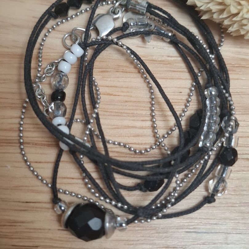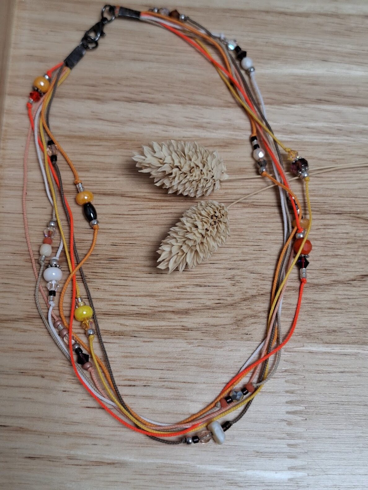 Des colliers modulables et singuliers, où fils, chaînes et perles s’entrelacent avec légèreté. Chaque création est une pièce unique, façonnée librement selon l’inspiration du moment.