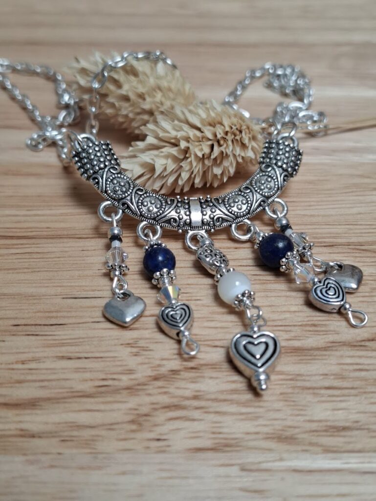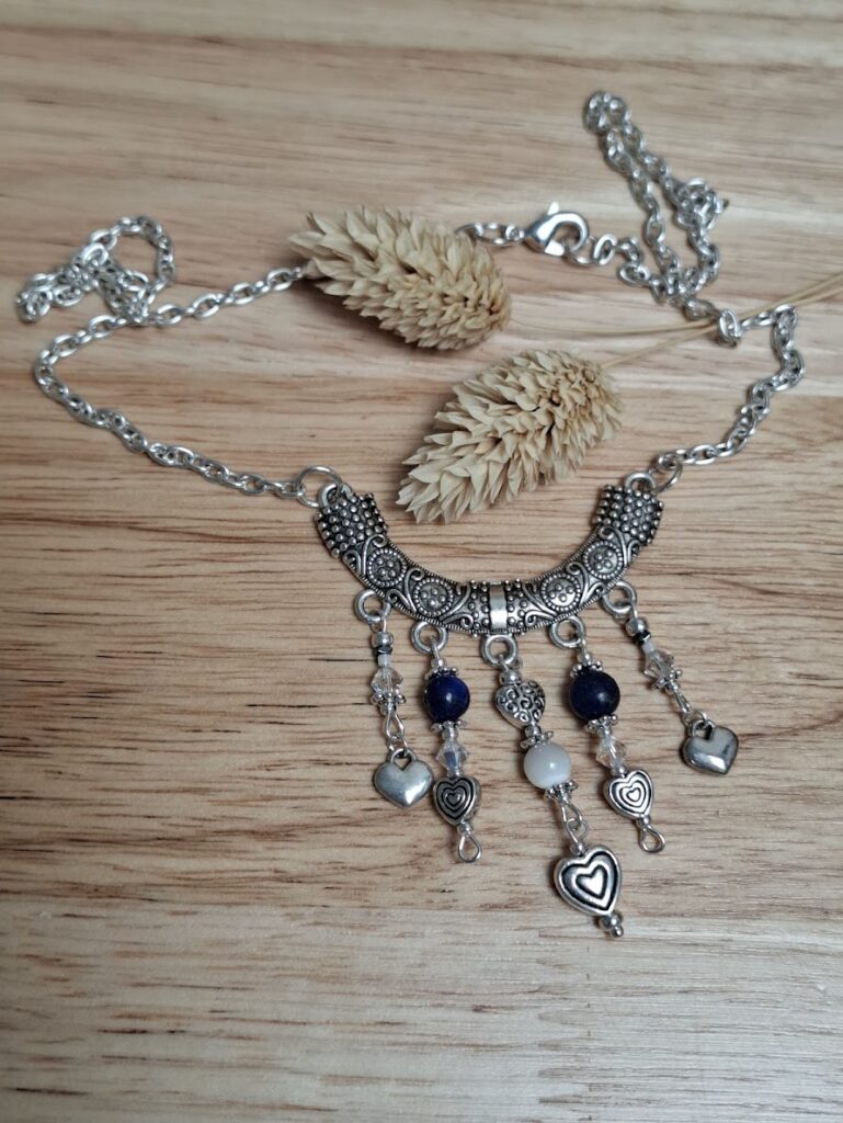 • des supports métalliques associés à des perles : pierres naturelles, perles de Bohème, toupies scintillantes,