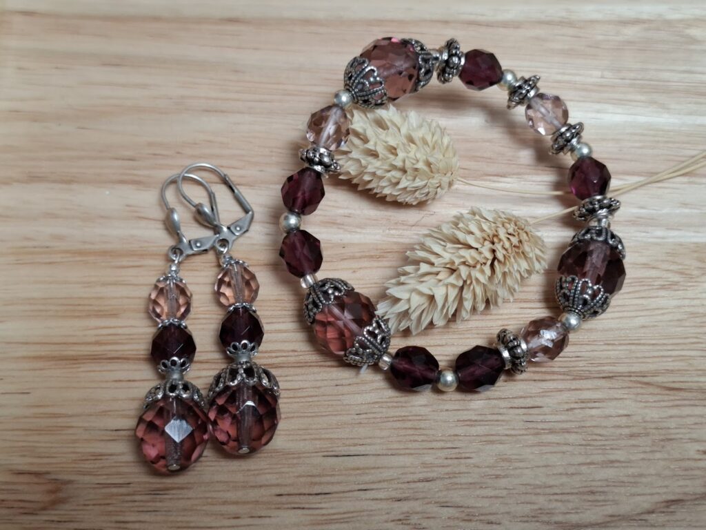 perles Bohème facettées : aplaties (3 de 6mm, 2 de 10mm) , 6 rondes 4mm