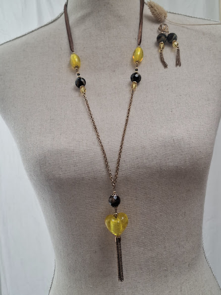 Collier: Pendentif 10 cm – Chaîne & Ruban: 75cm