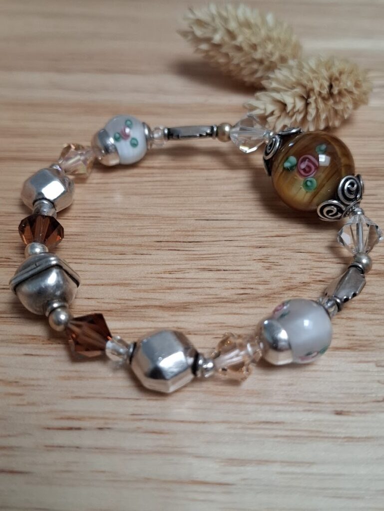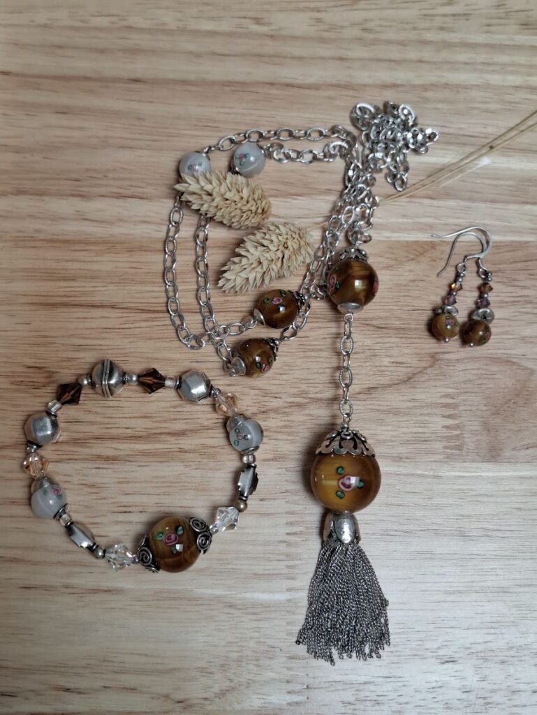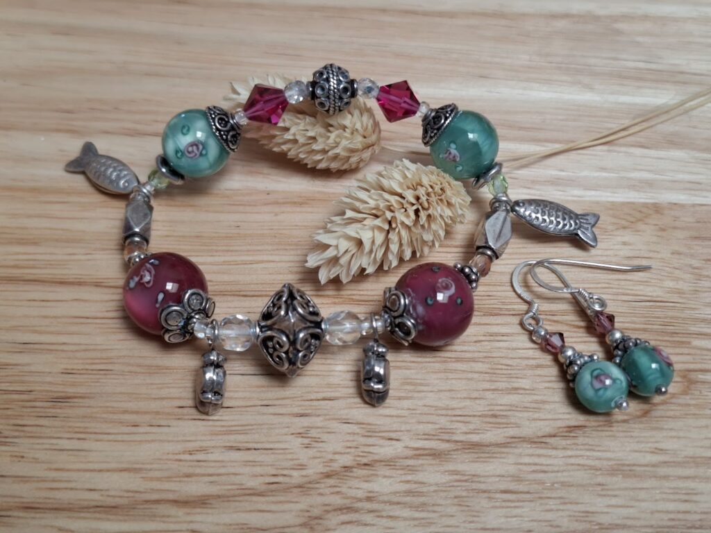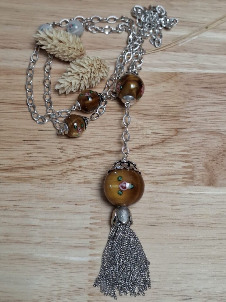 - des perles façonnées à la lampe (perles artisanales en verre aux inclusions uniques), révélant toute la poésie du verre travaillé,